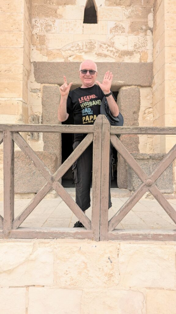 A helter skelter series of UBER and taxi rides has us late arriving for our pre-booked 2pm departure tour. Luckily our tour guide waited for us and we breathed a sigh of relief. One of the “must dos” in Saudi is the tour to the “edge of the world”. A two hour drive some of it rough 4WD has our jeep pulling up on the rim of a massive escarpment. The Tuwaiq Escarpment is 800km long with sheer cliffs 300 meters deep. As far as the eye can see is a flat dry ocean bed. There are no guardrails nor safety fences here and this is not a place for acrophobics. We spend 2 hours here walking along the rim and watch the sun set over the horizon before enjoying coffee and dates beside a campfire and our 2 hour drive home.