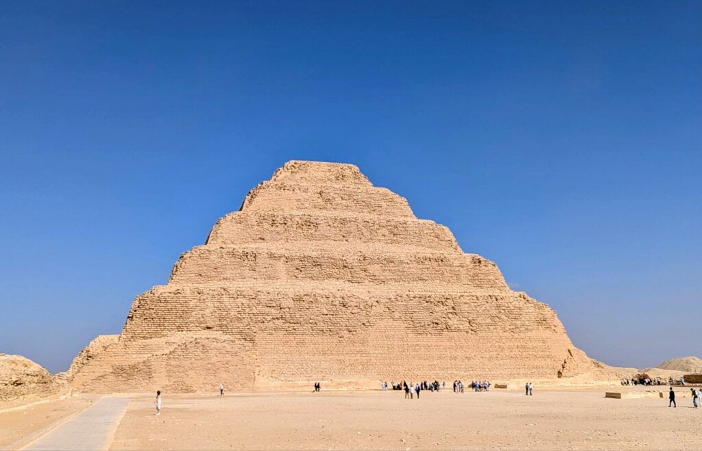 Our day begins at Saqqara at the Step pyramid of the pharoah Djoser. Built in the 27th century BC ( a staggering 48 centuries ago!) it is the oldest standing stone structure on the planet. Built as 6 mastabas (tombs) atop of each other it is the prototype of subsequent pyramids. It is surrounded by a funerary temple and other less well preserved pyramids. Wandering through these structures with ancient frescos depicting the royals buried there and the lifestyles of the average people in those times brings memories flooding back from my trip through Egypt in 1982.