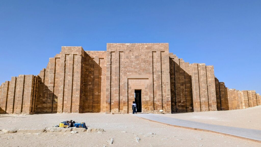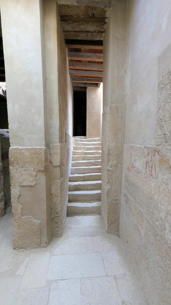Nearby is the Serapeum necropolis dedicated to sacred Apis bulls. It is an underground chamber with 24 massive sarcophagi weighing up to 62 tons. How the ancient Egyptians in 1400 BC moved these massive structures underground is still a mystery.