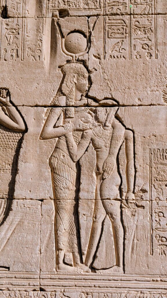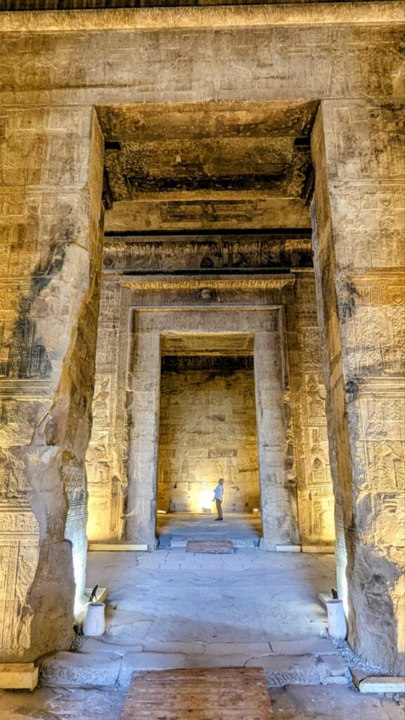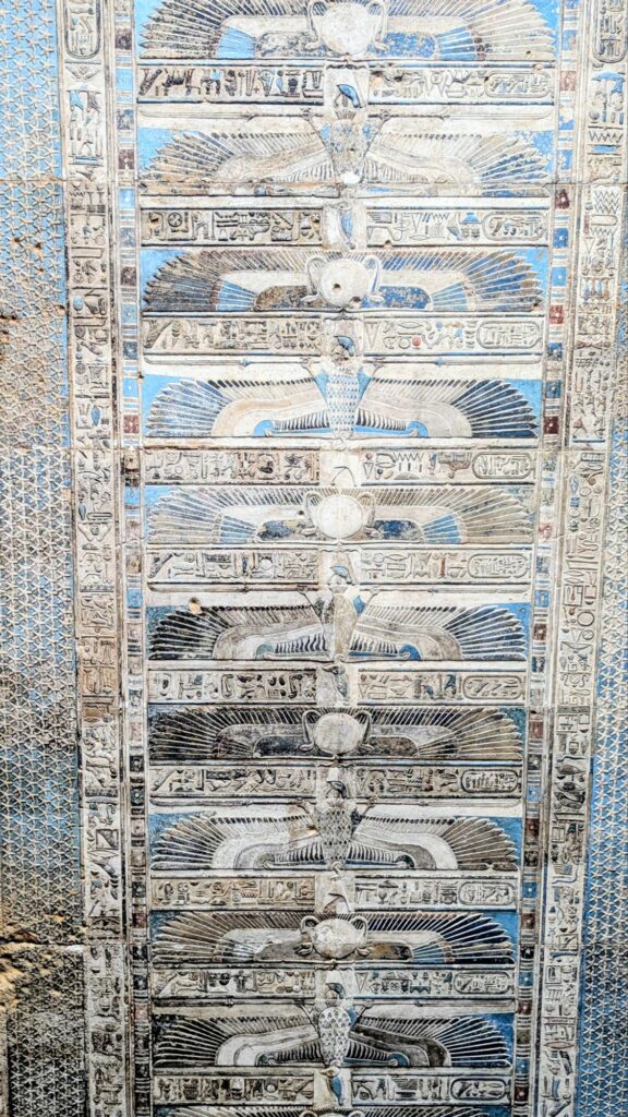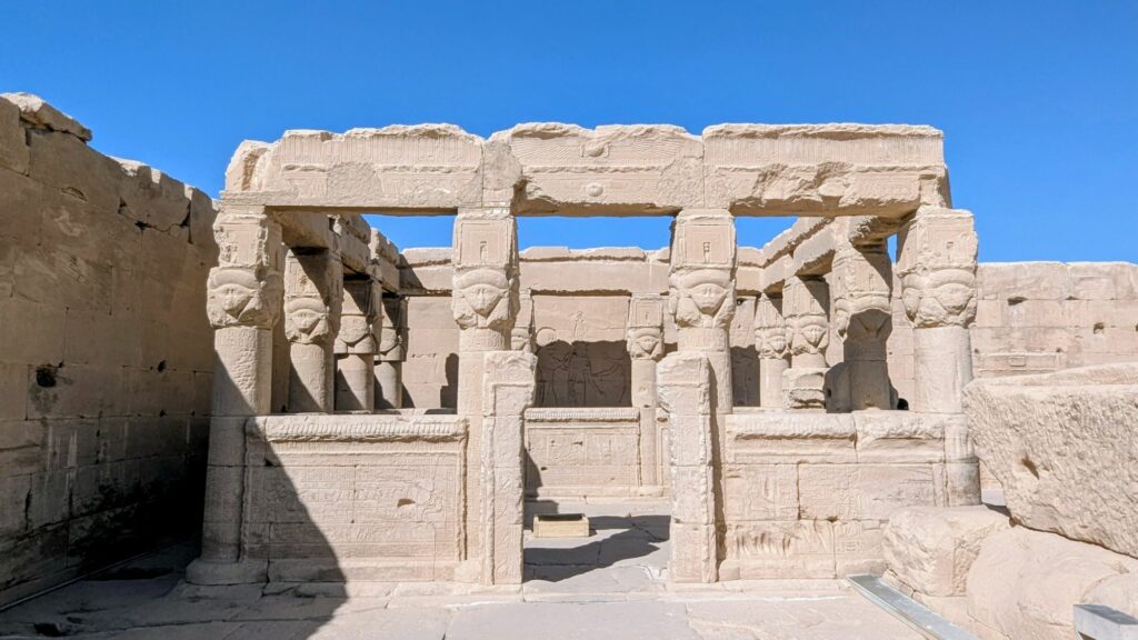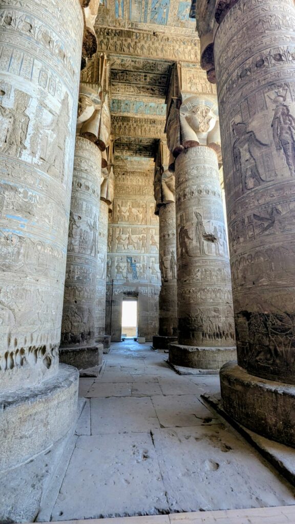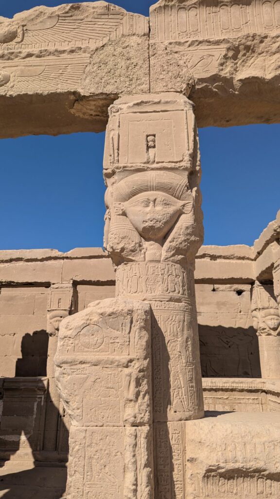 Completed around 360 BC this is one of the best preserved temples in Egypt particularly the artwork inside. It is dedicated to the goddess Hathor. Depicted as a cow, often a woman with cow ears she is the goddess of goodness, namely love, beauty, music, joy and motherhood. She is said to have breast fed Horus, the Falcon god and son of the supreme deities Isis and Osiris. She went on to marry Horus and they had two children together.