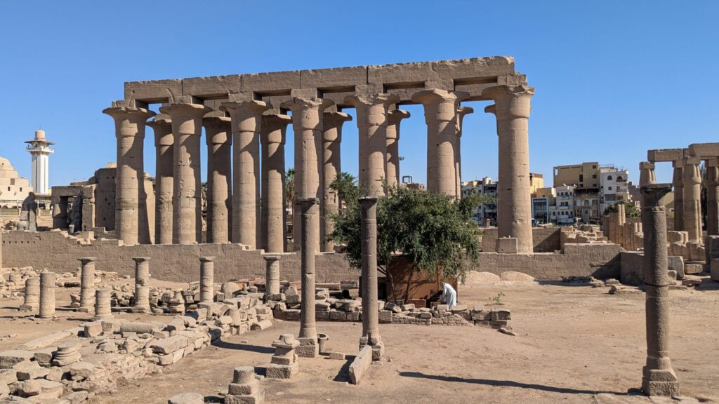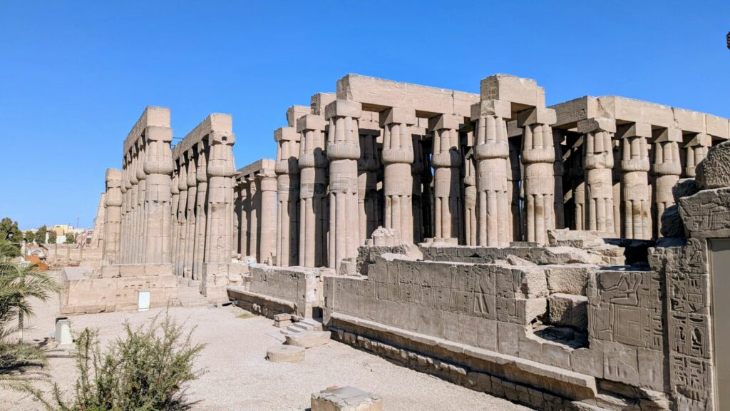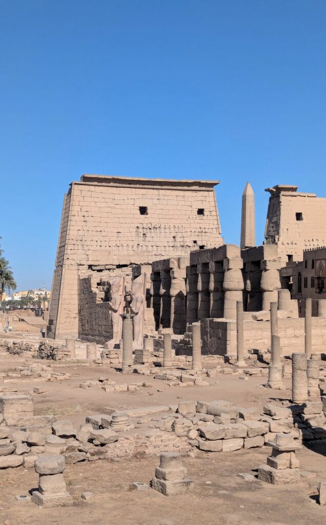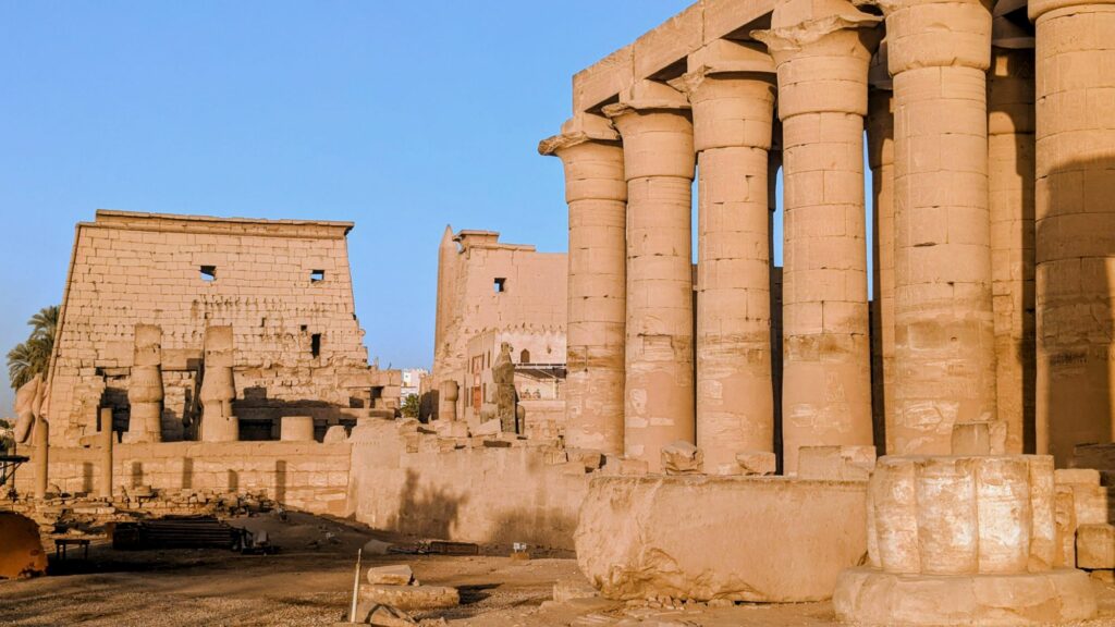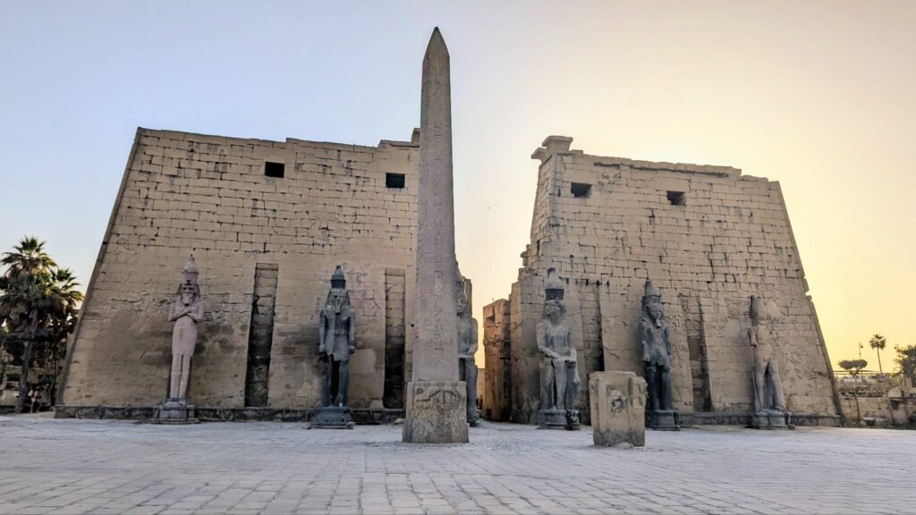 Luxor temple gateRamses 2Ramses 2 wife NefertariMosque built atop Luxor templeAncient Christians tried to repurpose these temples as churches in Roman timesEntrance Gate
