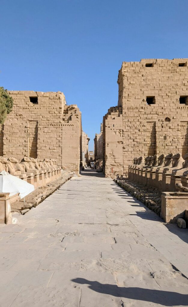The smaller Luxor temple is connected to Karnak by a 3km road lined with sphinxes. It was built in 1400 BC and smaller than Karnak. It was dedicated to the rejuvenation of kingship and is believed to be the site where many of the pharoahs of Egypt were crowned.